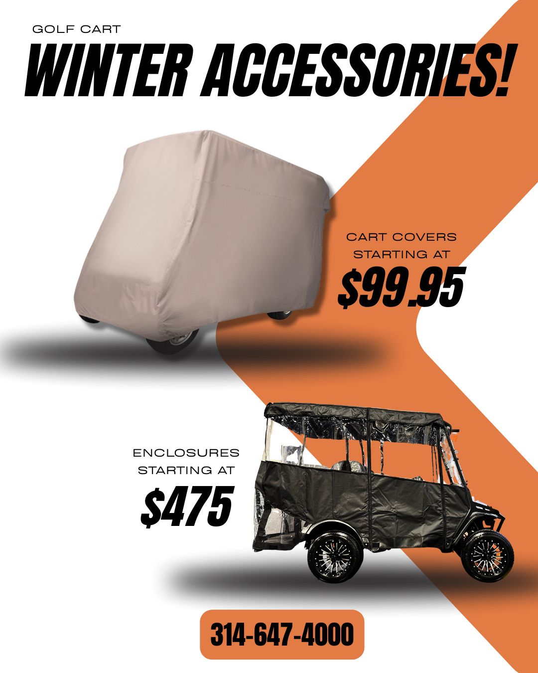 Golf cart storage covers starting at $99.95 and golf cart enclosures starting at $475, professionally installed by our certified golf cart mechanics. We offer storage covers and enclosures for E-Z-GO, Club Car, Yamaha, Icon, etc.